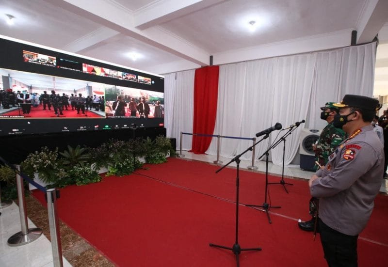 Jombang – Panglima TNI Marsekal Hadi Tjahjanto dan Kapolri Jenderal Listyo Sigit Prabowo meninjau vaksinasi di Pondok Pesantren (Ponpes) Tebu Ireng, Jombang. Kegiatan tersebut juga dilaksanakan serentak di 41 Ponpes se-Jawa Timur, pada Rabu (25/8/2021).