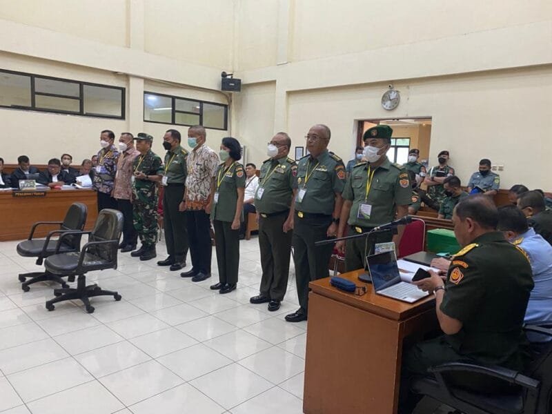Persidangan dihadiri oleh Hakim Ketua Brigjen TNI (K) Faridah Faisal, S.H. M.H., dan 2 (dua) orang Hakim Anggota yaitu Kolonel Chk Dr. Hanifan Hidayattuloh, S.H. M.H. dan Fahzal Hendri, S.H. M.H., Oditur Militer dan Jaksa Penuntut Umum, Penasehat Hukum Terdakwa I dan Terdakwa II, Penyidik Koneksitas dari unsur Pusat Polisi Militer (PUSPOMAD) TNI AD dan Kejaksaan Agung.