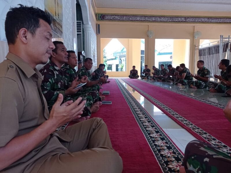 Pidie – Guna mendukung kelancaran kegiatan Latihan Antar Kecabangan Batalyon Tim Pertempuran (Lat Ancab YTP) disatuan jajaran Kodam IM, Personel Kodim 0102/Pidie melaksanakan kegiatan Do’a bersama, bertempat di Masjid Al-Munawwarah Makodim 0102/Pidie,Pada hari Senin (27/06/2022).