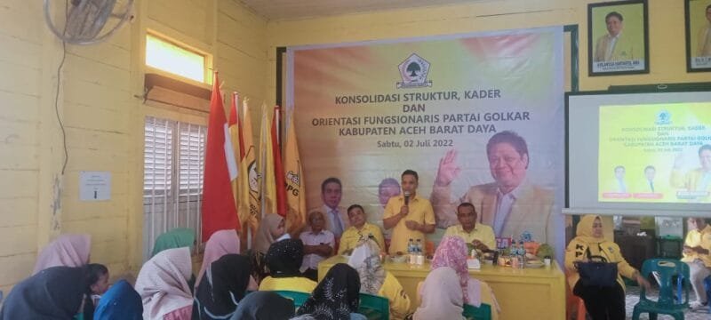 Abdya – Untuk memantapkan persiapan menghadapi pemilu Tahun 2024 Dewan Pimpinan Daerah (DPD) II partai Golkar Aceh Barat Daya (Abdya) melaksanakan kegiatan konsolidasi kader, struktur dan orientasi fungsionaris di kantor DPD II partai Golkar Abdya di Kota Blangpidie, Sabtu (2/7/2022).