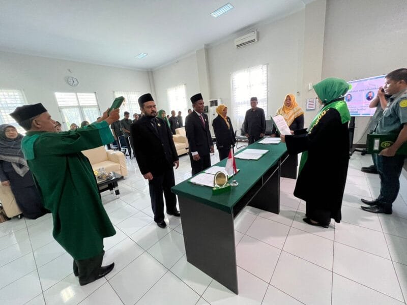 Banda Aceh – Ketua Mahkamah Syar’iyah Jantho Siti Salwa. SH.I., M.H melantik Izwar Ibrahim LC. LL.M sebagai Panitera Muda Hukum, Mahdalena Sebagai Panitera Muda Jinayah, dan Abdul Hadi S.H sebagai panitera Pengganti di Ruang Sidang Utama Mahkamah Syar’iyah Jantho, yang dihadiri oleh Wakil Ketua, seluruh Hakim, Panitera, Sekretaris dan seluruh Pegawai serta tenaga PPNPN Mahkamah Syar’iyah Jantho dan rombongan pengantar dari Mahkamah Syar’iyah Klas I B Sigli. –Selasa, (09/8/2022) Kota Jantho