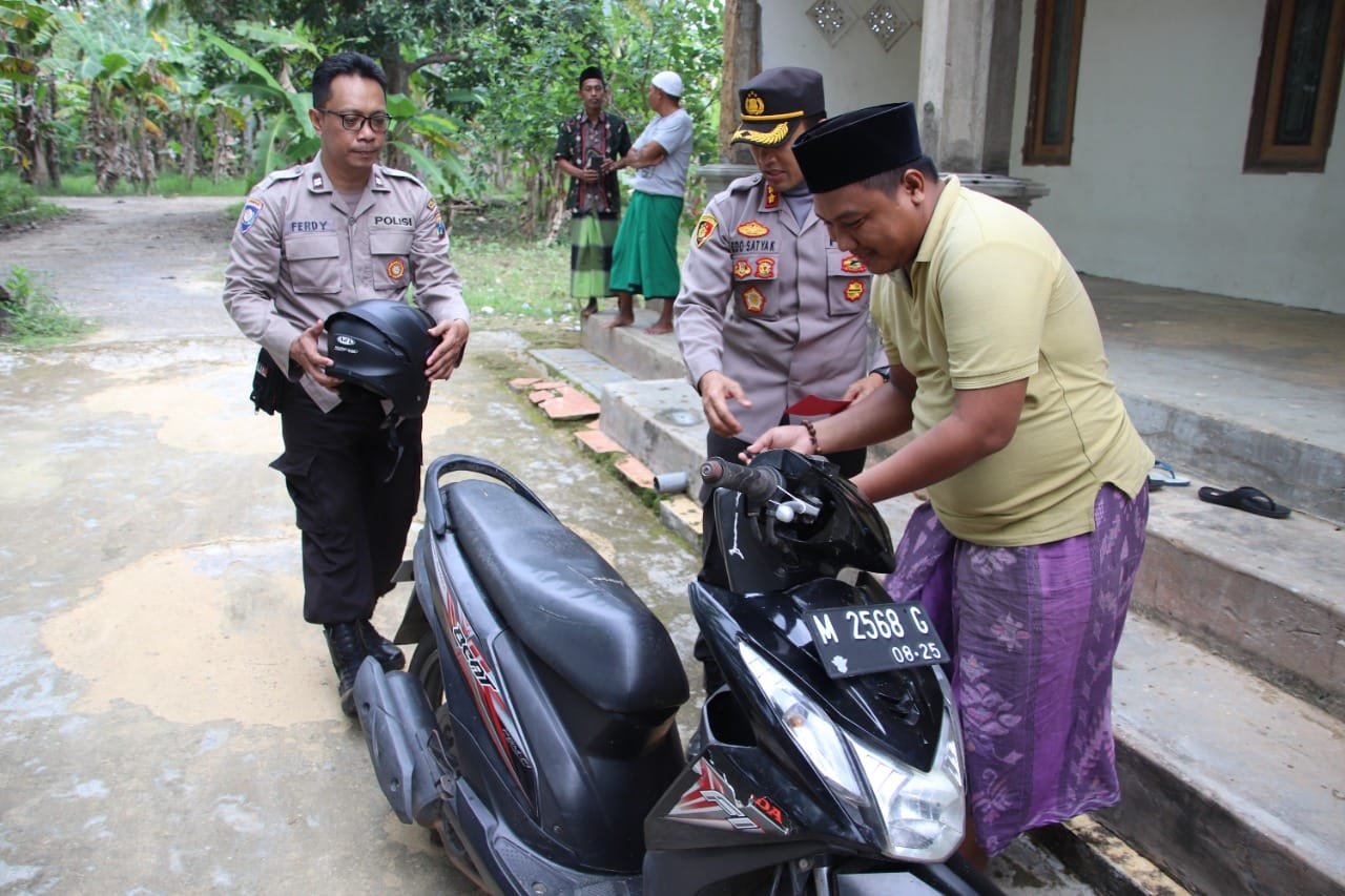 Pertama-tama, Kapolres Edo mengantarkan sepeda motor milik Aziz, warga Desa Karangnangka, Kecamatan Rubaru. yang hilang saat diparkir di garasi rumahnya beberapa waktu lalu.