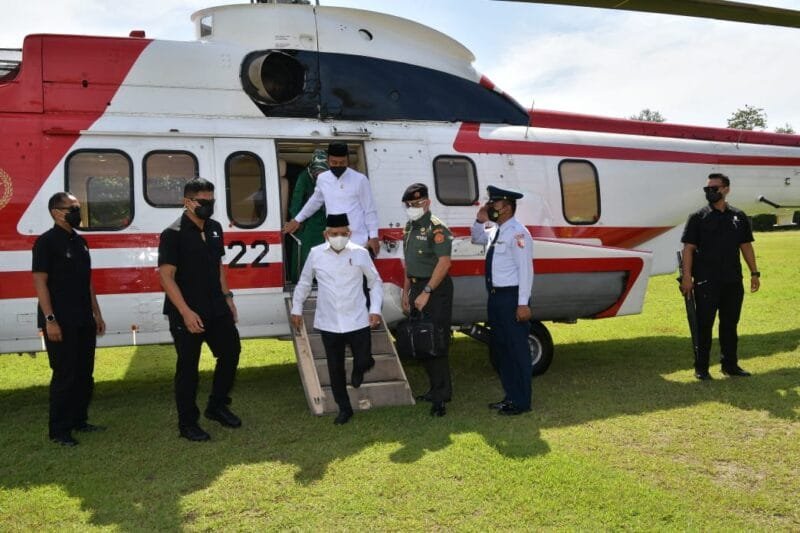 Menggunakan Helikopter VVIP Kepresidenan Super Puma TNI AU, Wapres lepas landas pada pukul 08.35 WITA dari Pangkalan Udara TNI AU Sultan Hasanuddin, Makassar, menuju Helipad Stadion Andi Ninnong, Kota Sengkang, Kabupaten Wajo.