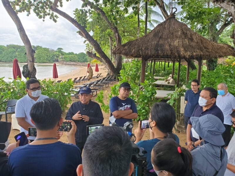 Hadir mendampingi Wapres dalam keterangan pers ini, Staf Khusus Wapres Masduki Baidlowi dan General Manager ITDC The Nusa Dua I Gusti Ngurah Ardita. [ Netty_*]