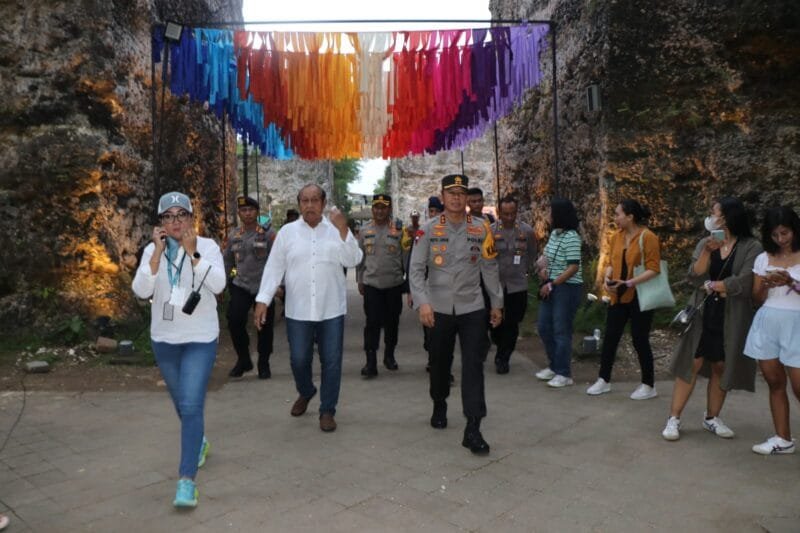 Kapolda Bali, Irjen Pol. Drs. Putu Jayan Danu Putra, S.H., M.Si. didampingi Karo Ops, Kabid Humas, Kabid TI dan Kabid Keu langsung mendatangi GWK mengecek pengamanan yang dilakukan oleh anggota Polri.