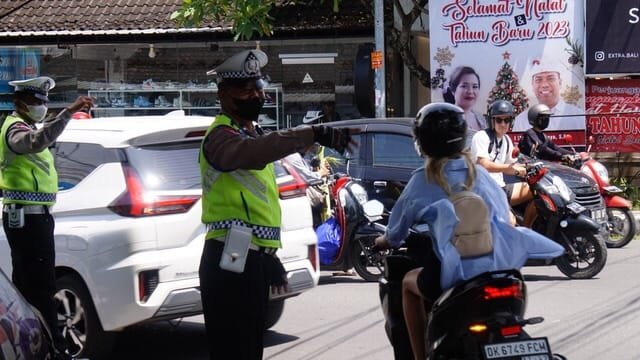 KSINews, Bali – Untuk memastikan kelancaran lalulintas saat malam pergantian tahun di seputaran Patitenget, canggu dan pantai brawa, Polda Bali dan Polres Badung menerjunkan Personel lalulintas disepanjang jalan dan persimpangan diseputaran objek wisata canggu, patitenget dan pantai brawa, (31/12/22).