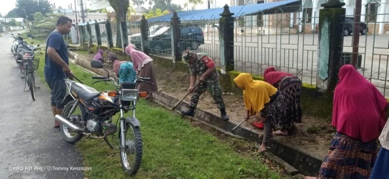 KSINews, Aceh Timur – Babinsa Koramil 05/Idr Kodim 0104/Aceh Timur, Sertu Abdullah bersama warga masyarakat melaksanakan kegiatan gotong Royong membersihkan jalan dan parit di Desa Gampong Jawa Kecamatan, Idi Rayeuk Kabupaten, Aceh Timur, Rabu (11/01/23).