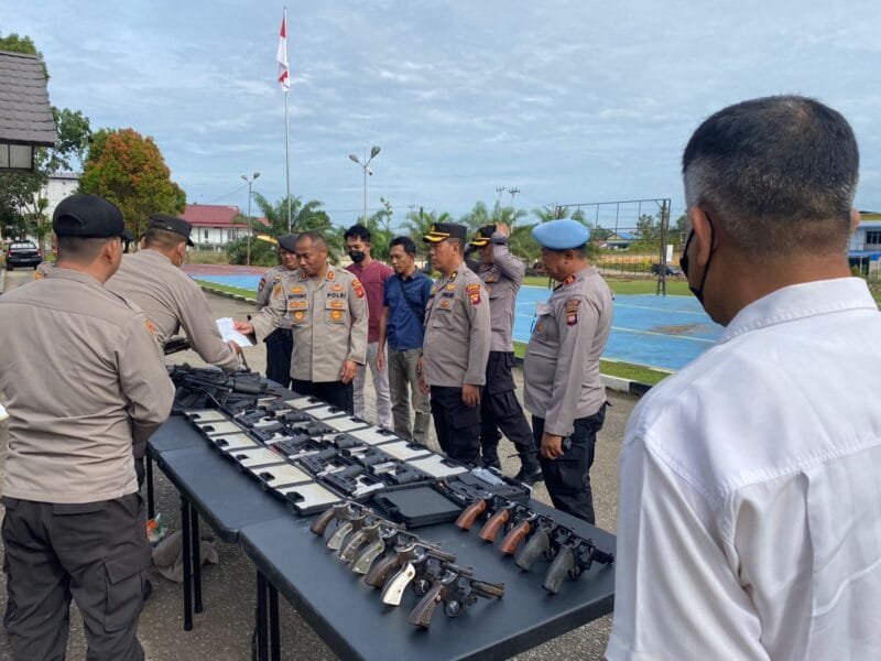 Didampingi sejumlah pejabat utama, seluruh senjata api laras pendek dan laras panjang diperiksa satu persatu mulai dari jumlah senpi, jumlah amunisi, surat menyurat maupun kondisinya.