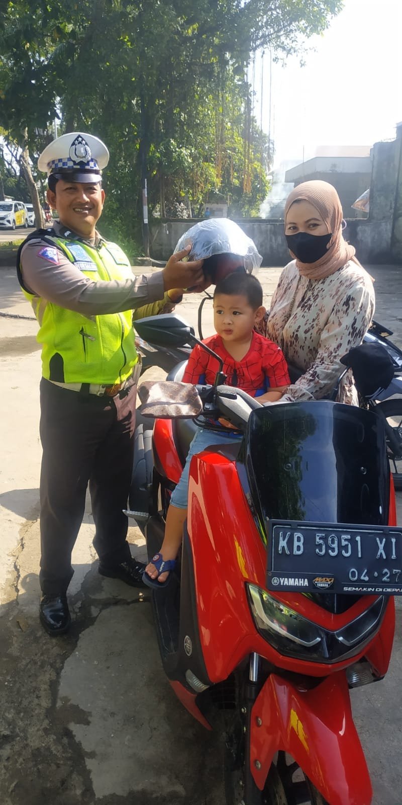 Hal ini terlihat dari personel Satlantas yang membagikan Brosur dan stiker ke beberapa kendaraan roda empat maupun roda dua yang melintas di Jalan Khatulistiwa, Jalan Pancasila dan Jalan Komyos Sudarso Pontianak sebagai bentuk dari edukasi.