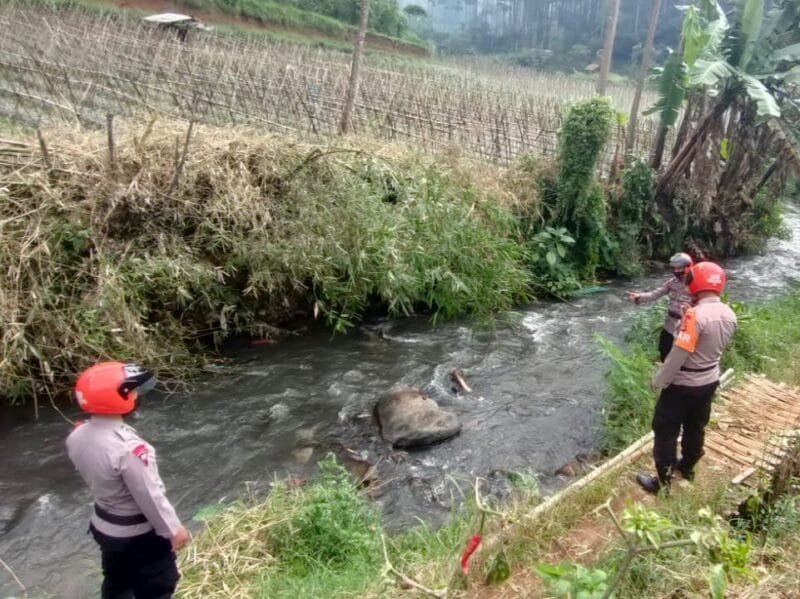 Team SAR Sat Brimob Polda Jabar Kompi 2 Batalyon B Pelopor Sat Brimob Polda Jabar melaksanakan kontrol sungai di Desa Cibodas Lembang .
