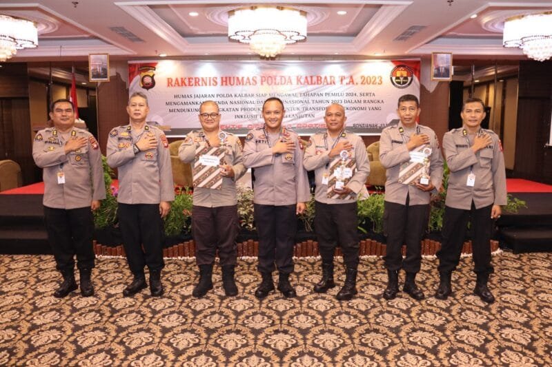 “ Kegiatan rakernis ini merupakan turunan dari kegiatan rakernis divisi humas yang dilaksanakan beberapa waktu lalu,dan sesuai dengan tema rakernis hari ini bahwa Humas Polda Kalbar siap mengawal dan mengamankan tahaan pemilu 2024 serta agenda nasional dan internasional tahun 2024 dalam rangka peningkatan produktifitas untuk transformasi ekonomiyang berkelanjutan ” Ujar Kombes Petit.
