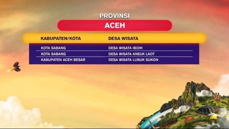“Alhamdulillah, prestasi membanggakan ini patut diapresiasi, karena Desa Wisata Iboih dan Desa Wisata Aneuk Laot termasuk yang terbaik di antara ribuan Desa Wisata di Indonesia,” kata Pj Wali Kota Sabang Reza Fahlevi, Kamis (23/3).