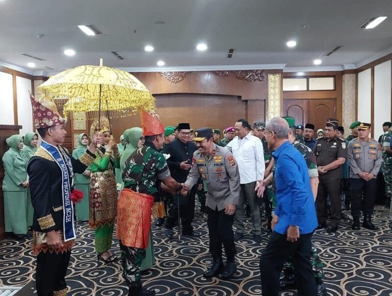 “Hari ini, Wakapolda Aceh menyambut kedatangan Pangdam IM Mayjen Novi Helmy Prasetya, sekaligus menghadiri prosesi tepung tawar,” kata Kabid Humas Polda Aceh Kombes Joko Krisdiyanto, dalam rilisnya, Sabtu, 25 Maret 2023.