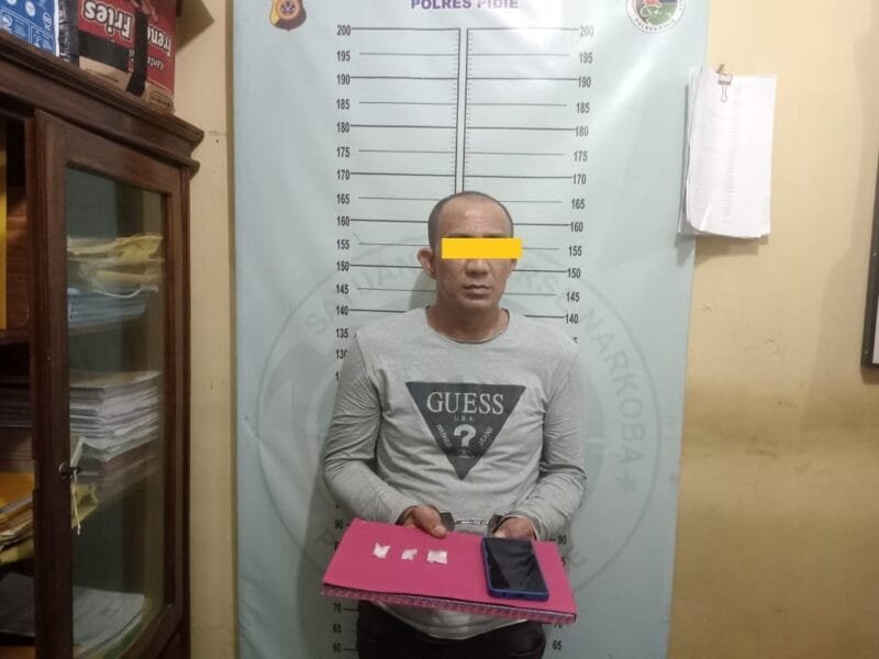 KSINews, Sigli – Seorang buruh harian lepas, MS (40) diamankan beserta Barang Bukti (BB) Narkotika jenis Sabu oleh Tim Opsnal Sat Res Narkoba Polres Pidie.