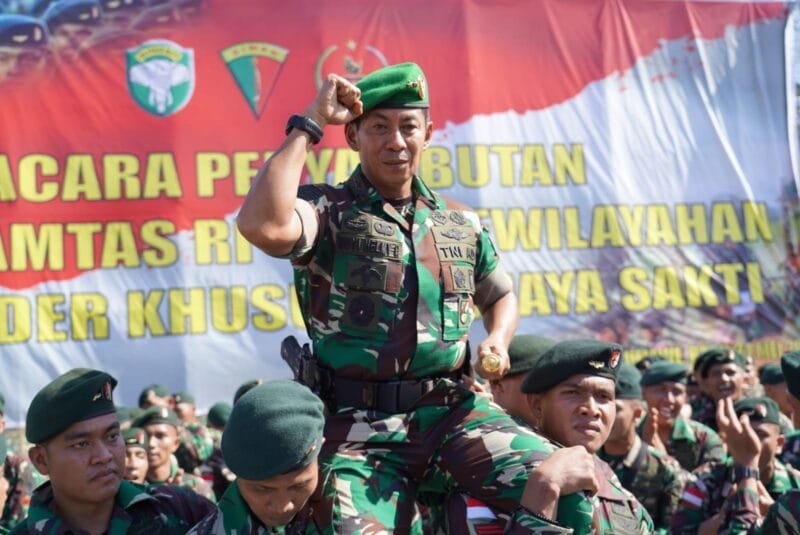 KSINews, Lhokseumawe – Panglima Komando Daerah Militer Iskandar Muda (Pangdam IM), Mayor Jenderal TNI Novi Helmy Prasetya, S.I.P, M.I.P, memimpin upacara penyambutan purna tugas Satgas Pamtas Penyangga RI-PNG Yonif Raider Khusus 113/Jaya Sakti TA 2022 di Pelabuhan Krueng Geukueh, Rabu (24/05/23).