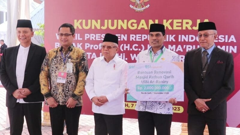 KSINews, Banda Aceh – BSI menyerahkan Bantuan Renovasi Masjid Fathun Qarib UIN Ar-Raniry Banda Aceh sebesar Rp 2 Miliar. Bantuan ini bertujuan untuk menjunjung tinggi kesucian di lingkungan setempat. Inisiatif transformatif ini akan memberikan semangat baru pada Masjid Fathun Qarib, yang terletak di kampus bergengsi Universitas Islam Negeri (UIN) Ar-Raniry di Banda Aceh.