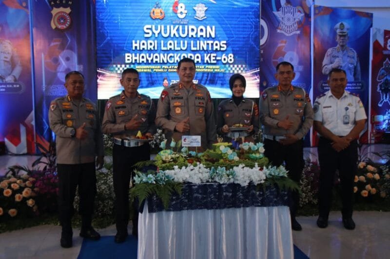 KSINews, Banda Aceh — Kapolda Aceh Irjen Ahmad Haydar bersama Irwasda Kombes Muhamad Setyobudi Dwiputro dan pejabat utama menghadiri Syukuran Hari Lalu Lintas Bhayangkara Ke-68 tahun 2023 di Aula Pesat Gatra Ditlantas Polda Aceh, Lamteumen, Kota Banda Aceh, Senin, 25 September 2023.