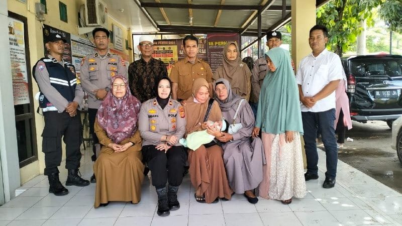 Proses mediasi serta pengembalian hak asuh terhadap bayi yang dimaksud berlangsung di Mapolsek Baitussalam, Selasa (7/11/2023).