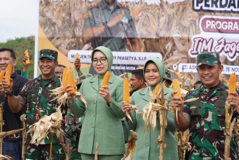 Panen Jagung pada program ketahanan pangan I’M Jagong kali ini sangat unik, karena ide brilian dari Pangdam IM, Mayjen TNI Novi Helmy Prasetya, S.I.P, M.I.P, yang melaksanakan tanam Jagung secara tumpang sari, di sela-sela lahan sawit yang masih dalam proses produksi.
