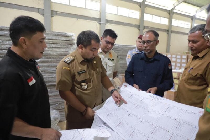 KSINews, Kota Jantho – Penjabat (Pj) Bupati Aceh Besar, Muhammad Iswanto SSTP MM bersama jajaran Forkopimda Aceh Besar, Selasa (09/01/2024) menjelang siang, melakukan pemantauan langsung kondisi logistik Pemilu (Pilpres dan Pileg) 2024 di Gudang Logistik Komisi Independen Pemilihan (KIP) Aceh Besar di Gedung Utama Jantho Sport City (JSC).