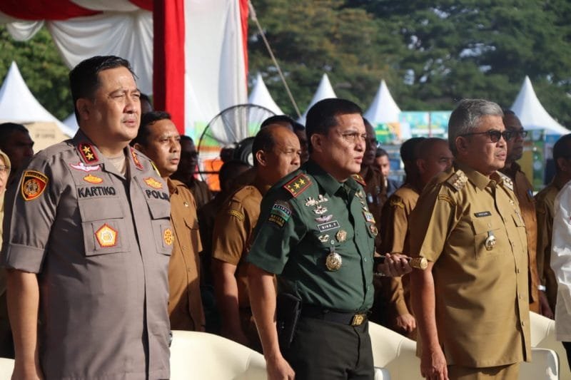 KSINews, Banda Aceh — Kapolda Aceh Irjen Achmad Kartiko bersama Penjabat Gubernur dan Pangdam IM menghadiri rapat koordinasi (rakor) pengendalian inflasi secara virtual bersama di Pelataran Lapangan Blang Padang, Kota Banda Aceh, Senin, 1 April 2024.