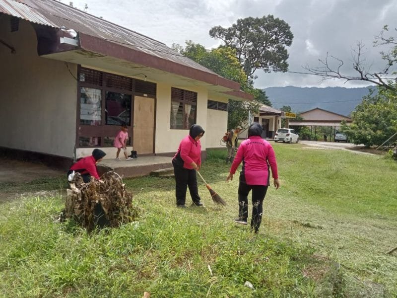 Cinta Kebersihan Bhayangkari Ranting Air Besar Kerja Bakti di Lingkungan Mapolsek