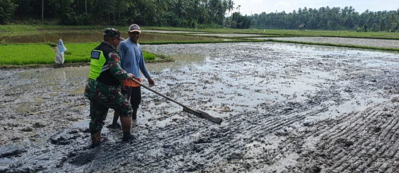 Koptu Kastono mengungkapkan, demi membantu warga dalam meningkatkan ketahanan pangan di wilayah binaan, pihaknya berpartisipasi dengan terjun langsung ke sawah untuk membantu petani meratakan tanah sawah yang akan ditanami Padi.