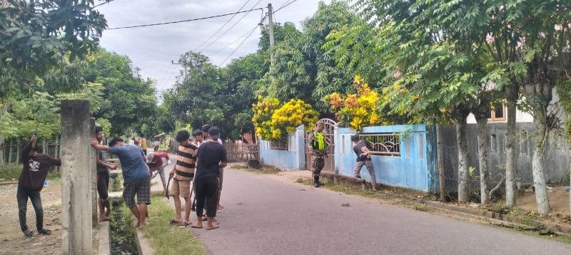 Kegiatan gotong-royong ini merupakan sarana kebersamaan antara Anggota Babinsa dan warga wilayah binaan demi membantu tercapainya kenyamanan desa serta kebersihan desa binaan. []