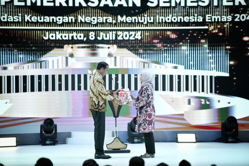 Dengan tema ‘Menguatkan Fondasi Keuangan Negara, Menuju Indonesia Emas 2045’, penyampaian LHP dihadiri Presiden RI Joko Widodo dan Wakil Presiden Ma’ruf Amin berlangsung di Cendrawasih Room, Jakarta Convention Center (JCC), Senin (8/7/2024).