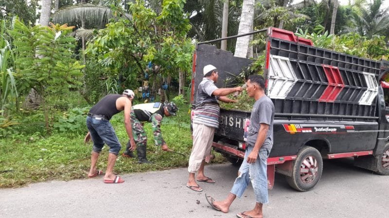 Bireuen, – Babinsa Koramil 06/Peusangan Kodim 0111/Bireuen Koptu Munizar melaksanakan gotong royong bersama masyarakat membersihkan kanan kiri jalan bertempat di Desa Pante Pisang Kecamatan Peusangan Kabupaten Bireuen. Senin (15/07/2024).