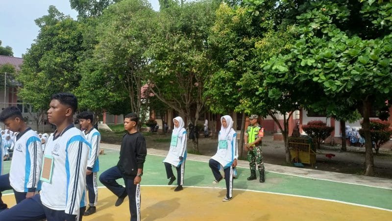 Bireuen, – Babinsa Posramil Kuala Kodim 0111/Bireuen Sertu Budiono melaksanakan MPLS (Masa Pengenalan Lingkungan Sekolah) SMAN 1 Kuala dalam rangka Melatih peraturan baris-berbaris bertempat di Desa Lhok Awe-awe Kecamatan Kuala Kabupaten Bireuen. Rabu (16/07/24).
