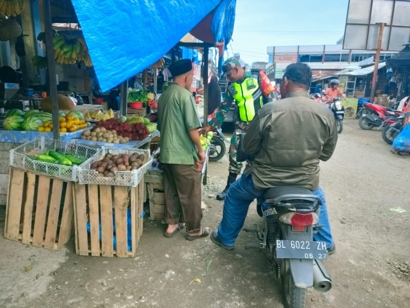 Bireuen, – Babinsa Koramil 02/Samalanga Kodim 0111/Bireuen Koptu Adi iskandar Melaksanakan Komsos dengan pedagang Buah bertempat di Desa Sangso Kecamatan Samalanga Kabupaten Bireuen. Minggu (28/07/24).