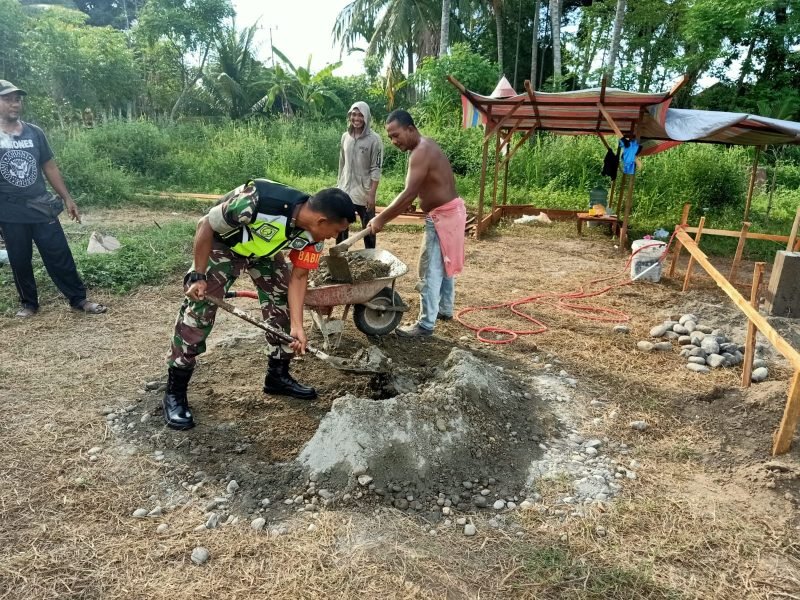 Bireuen, – Sertu Dedi Salputra Babinsa Koramil 07/Jangka melaksanakan kegiatan membantu masyarakat membangun Rumah Bantuan Masyarakat Miskin Ds Alue Bie Kecamatan Jangka Kabupaten Bireuen. Selasa (20/08/24).