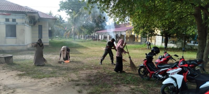 Terlihat kekompakan antara Babinsa, staf kecamatan saat melaksanakan kegiatan tersebut. Dengan penuh semangat serta jiwa kekeluargaan mereka bergotong royong melaksanakan pembersihan halaman kantor kecamatan. “Kegiatan Gotong royong ini di fokuskan pada pembersihan sampah dan dedaunan yang gugur disekitar kantor, sehingga lingkungan kecamatan ini menjadi terlihat bersih dan nyaman” ujar Sertu Sahroni.
