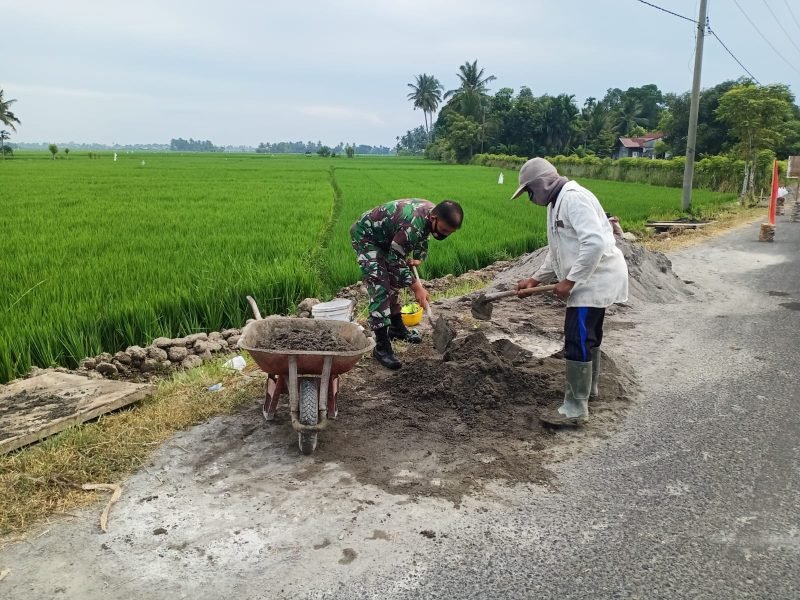 Bireuen, – Sertu Zulhapri Melko Babinsa Posramil Kuala melaksanakan kegiatan membantu masyarakat pembersihan saluran irigasi bertempat di Desa Jomblang Aron Kecamatan Kuala Kabupaten Bireuen. Sabtu (26/10/24)