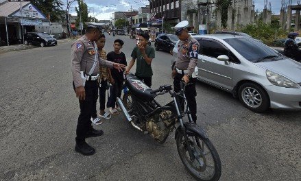 LHOKSEUMAWE – Petugas Polantas Polres Lhokseumawe melakukan penindakan tegas terhadap pengendara sepeda motor yang diduga masih di bawah umur di depan Pos Lantas Cunda, Kec. Muara dua, Kota Lhokseumawe, rabu (6/11/2024) pagi.