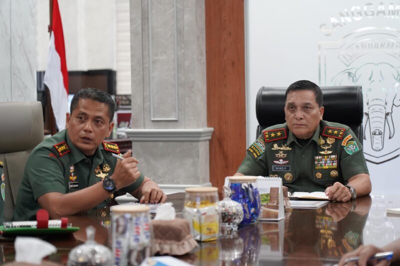 Banda Aceh, – Panglima Komando Daerah Militer Iskandar Muda (Pangdam IM), Mayor Jenderal TNI Niko Fahrizal, M.Tr.(Han), menerima paparan dari Komandan Korem 012/Teuku Umar, Kolonel Inf Benny Rahadian, S.E., M.Han., mengenai hasil renovasi dan pembangunan fasilitas di Makam Pahlawan Nasional Teuku Umar Djohan Pahlawan. Kegiatan ini berlangsung di ruang kerja Pangdam IM pada Kamis (20/2/2025).