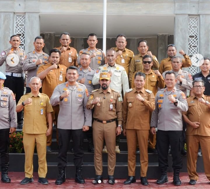 Aceh Timur– Bupati Aceh Timur, Iskandar Usman Al-Farlaky,S.H.I, M.Si bersama Wakil Bupati T. Zainal Abidin, S.Pd, MH dan jajaran Pemerintah Kabupaten Aceh Timur halal bihalal idul Adha bersama Forkopimda Kabupaten Aceh Timur, Selasa 10 Juni 2025.