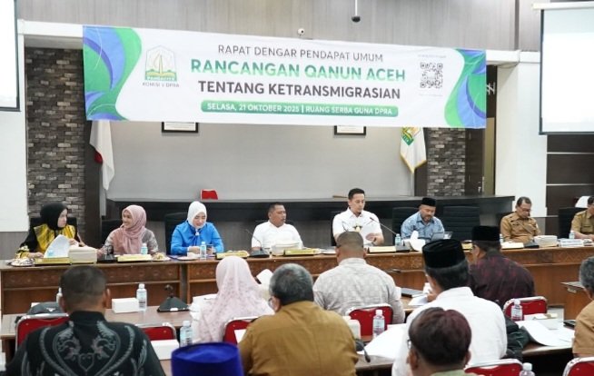 Banda Aceh – Komisi V DPRA melaksanakan Rapat Dengar Pendapat Umum (RDPU) Rancangan Qanun Aceh Tentang Penyelenggaraan Transmigrasi, selasa, (21/10/2025).