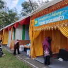 Aceh Besar – Stand Pameran Pembangunan HUT Aceh Besar Ke 69 mulai dibangun di depan lapangan…